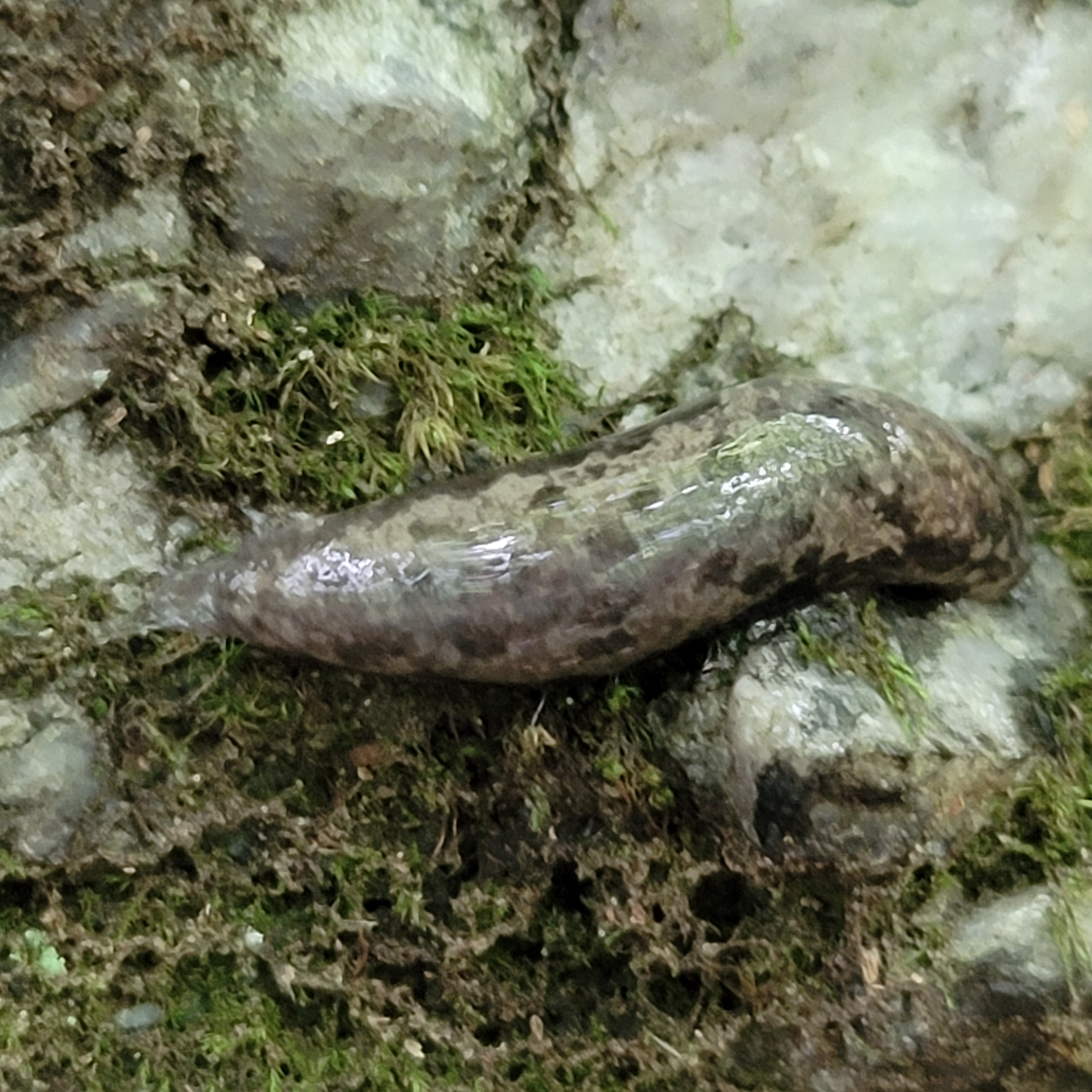 We moved the car to the other parking lot where it was thankfully much quieter then. We head off to a DNF. There were lots of rocks there and we spent at least an hour searching for the cache but just came up empty. I did spot this slug on the rocks.