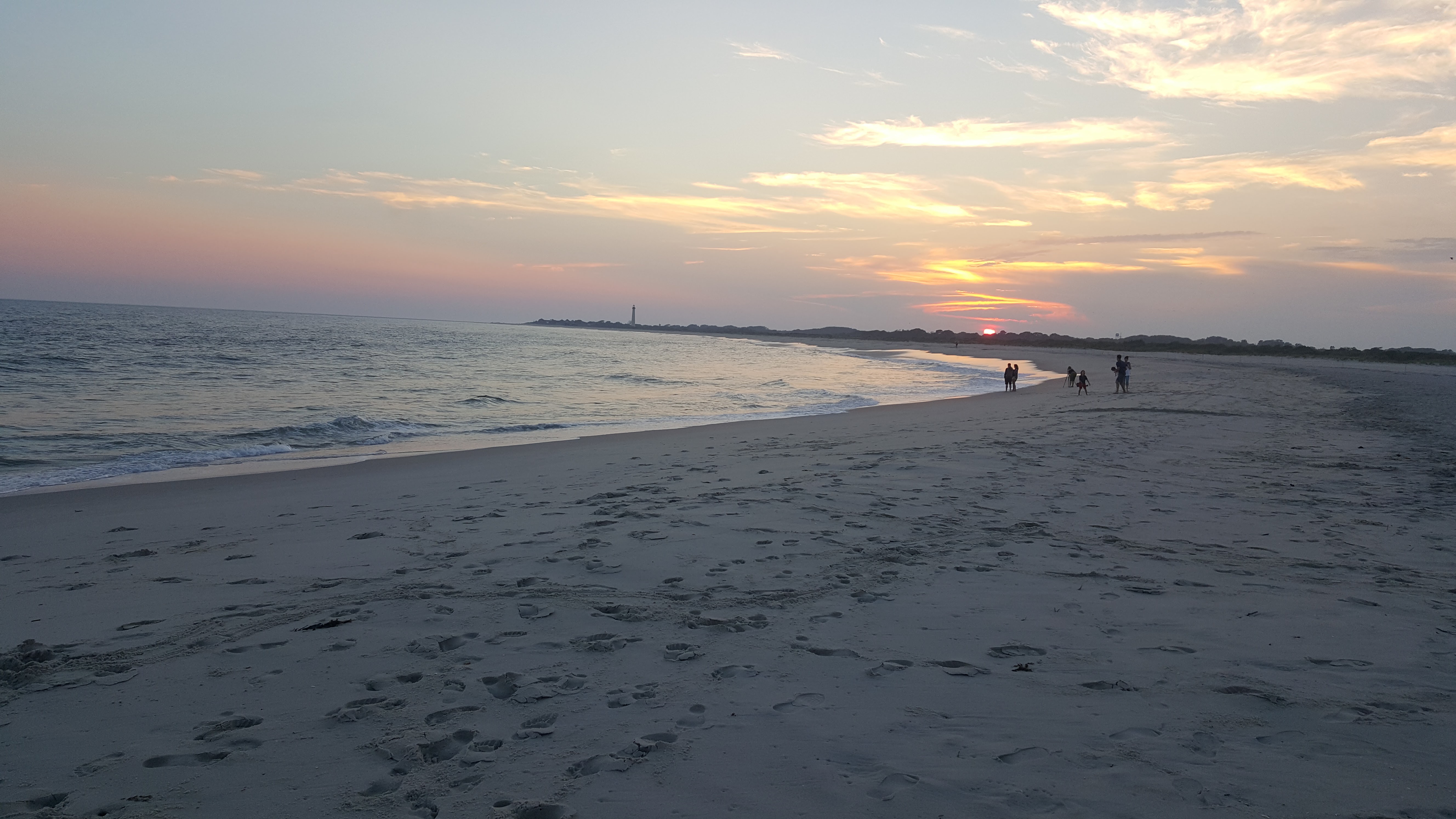 The evening this photo That we took this photo, we walked down to the end of Cape May to see if we could catch a sunset again. Sure enough, we got there in time to witness this fantastic sunset nearly over the lighthouse. We just sat on the rocks and enjoyed it along with the sounds of the waves.